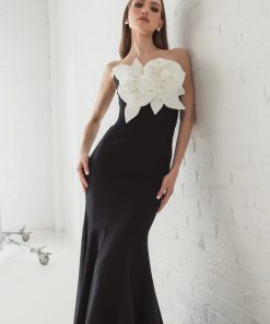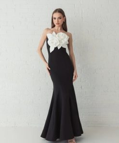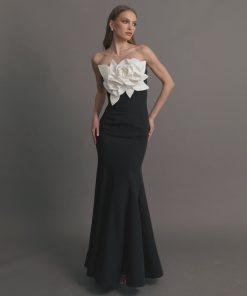 Be the first to review “Mac Duggal Women’s Dresses Black Strapless Crepe Mermaid Gown With 3d Flowers | Black” Cancel reply