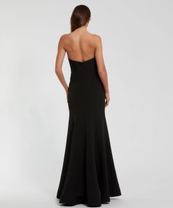 Mac Duggal Women’s Dresses Black Strapless Crepe Trumpet Gown With 3d Rhinestone Flower | Black