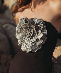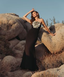 Be the first to review “Mac Duggal Women’s Dresses Black Strapless Crepe Trumpet Gown With 3d Rhinestone Flower | Black” Cancel reply