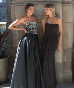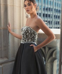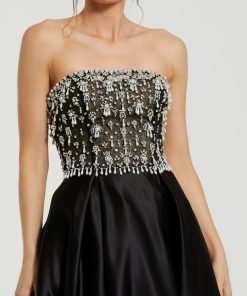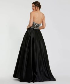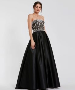 Mac Duggal Women’s Dresses Black Strapless Embellished Top Satin Ball Gown | Black Ivory