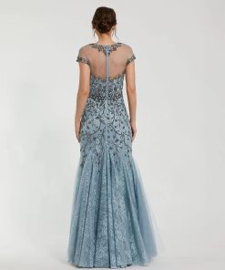 - Fitted through mid-skirt; showcasing a mermaid silhouette