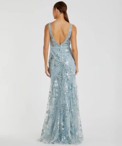 This enchanting gown features embroidered mesh, 3D floral appliqué, heat-set crystals, and a hand-beaded waist belt, perfectly encapsulating romance and pure glamour.