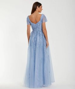 Mac Duggal Women’s Dresses Blue Embroidered Beaded A-line Gown With Overskirt | Powder Blue