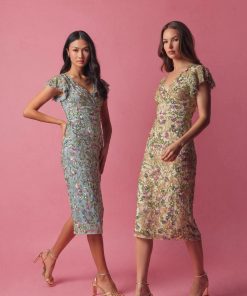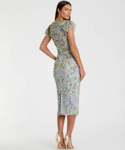 Be the first to review “Mac Duggal Women’s Dresses Blue Floral Sequin Embellished Flutter Cap Sleeve Dress | Slate Blue Multi” Cancel reply