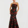 This stunning gown features intricate beaded and sequin detailing, a one shoulder neckline, and a subtle high low hem. The beaded bow embellishments add a unique and glamorous touch, making it the perfect gown for any special occasion.