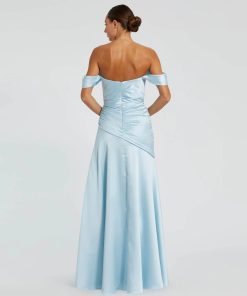 Embrace luxury in our Satin Off The Shoulder Crossover Gown. The sweetheart neckline and off-the-shoulder design create an alluring silhouette while the thigh-high slit adds a touch of drama. Made from lustrous satin, this gown is perfect for making a statement at any event.