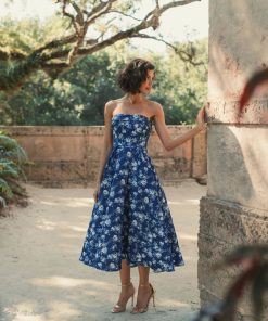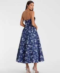 Embrace timeless elegance in this midi dress. Featuring a strapless neckline and allover floral-print, it’s the perfect wedding guest or cocktail party look.