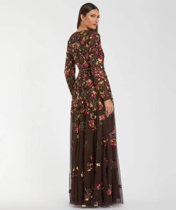 Be the first to review “Mac Duggal Women’s Dresses Brown Long Sleeve Floral Embellished Evening Gown | Espresso Multi” Cancel reply