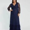Mac Duggal Women’s Dresses Beige Illusion Floral Midi Dress With Ruffle Detailing | Beige Multi