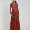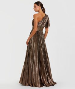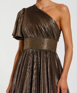 Mac Duggal Women’s Dresses Brown One Shoulder Pleated Metallic Ball Gown | Brown