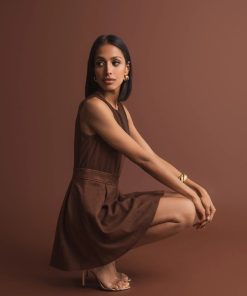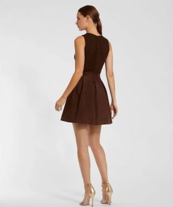 Be the first to review “Mac Duggal Women’s Dresses Brown Sleeveless Mesh And Suede A Line Mini Dress | Brown” Cancel reply