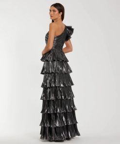 Be the first to review “Mac Duggal Women’s Dresses Dark Gray Pleated Metallic Ruffled One Shoulder Gown” Cancel reply