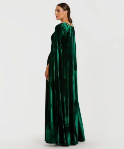 Mac Duggal Women’s Dresses Dark Green Velvet Cape Gown With Embellished Neckline | Deep Green