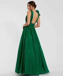 Mac Duggal Women’s Dresses Emerald Green Ruffle Shoulder V-neck Chiffon Gown | Emerald