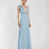 Sequin gown with v-neckline, ruched detailing, and draped short sleeves.
