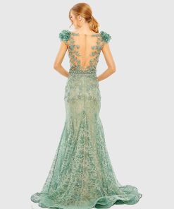 Mac Duggal Women’s Dresses Green Embroidered Illusion Appliqued Bodice Trumpet Gown | Sage