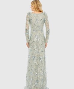 Mac Duggal Women’s Dresses Green Embroidered Wrap Over Puff Sleeve Trumpet Gown | Seafoam