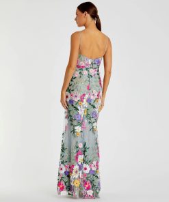 Mac Duggal Women’s Dresses Green Floral Embroidered Sleeveless Bustier Gown | Sage Multi