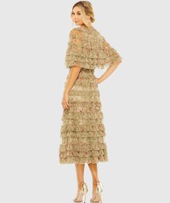Be the first to review “Mac Duggal Women’s Dresses Green Floral Ruffle Midi Dress With Cape | Olive” Cancel reply