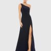 Full length gown with sequins, jeweled tasseled sleeves, and faux belt.