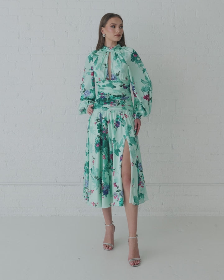 Be the first to review “Mac Duggal Women’s Dresses Green Keyhole Satin Long Sleeve Floral Dress | Green” Cancel reply
