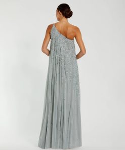 Mac Duggal Women’s Dresses Green One Shoulder Embellished Trapeze A Line Gown | Sage