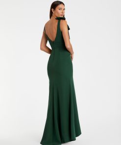Mac Duggal Women’s Dresses Green Sleeveless V Neck Bow Detail Mermaid Gown | Emerald