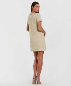 Mac Duggal Women’s Dresses Ivory Short Sleeve Embellished Boucle Mini Dress