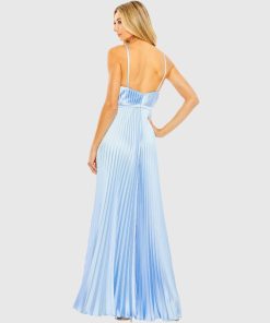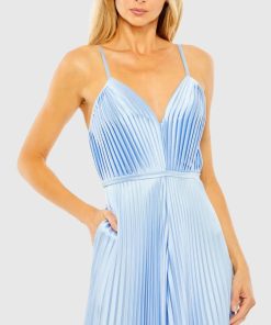 This fully-pleated wide-leg jumpsuit, crafted from luxurious silky charmeuse fabric, exudes elegance. Featuring functional pockets for added convenience, it combines sophistication with practicality, making it the perfect choice for any special occasion or stylish outing.