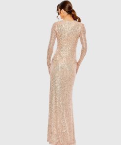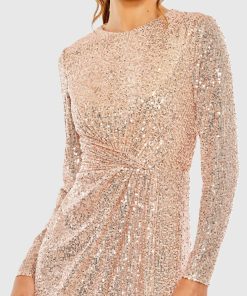 Be the first to review “Mac Duggal Women’s Dresses Light Pink Sequined Long Sleeve Side Knot Gown | Pink” Cancel reply