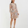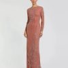 - Partially lined bodice; fully lined skirt; sheer unlined sleeves