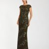 - Fully lined through bodice and skirt; semi-sheer unlined sleeves