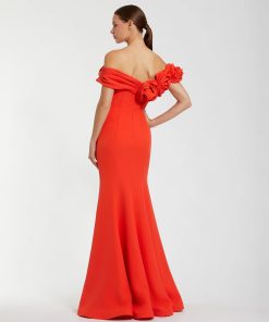 Mac Duggal Women’s Dresses Orange Off The Shoulder Crepe Mermaid Gown | Orange