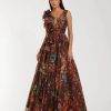 Mac Duggal Women’s Dresses Beige Illusion Floral Midi Dress With Ruffle Detailing | Beige Multi