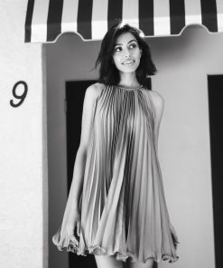 Your fun-loving spirit, in a dress! This charmeuse confection is cut in a swingy trapeze silhouette and styled with a halter neckline, cutaway shoulders, and flirty pleats that takes the dress to the next level. Wear it for end-of-the-year dances, cocktail parties, and other dress-up occasions.