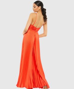 Mac Duggal Women’s Dresses Orange Pleated Plunge Neck Wide Leg Jumpsuit | Orange