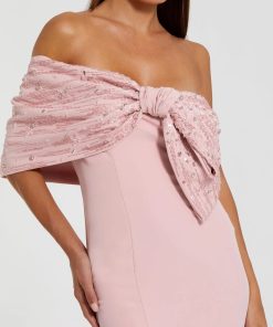 Be the first to review “Mac Duggal Women’s Dresses Pink Beaded Off-the-shoulder Satin Trumpet Gown | Blush” Cancel reply