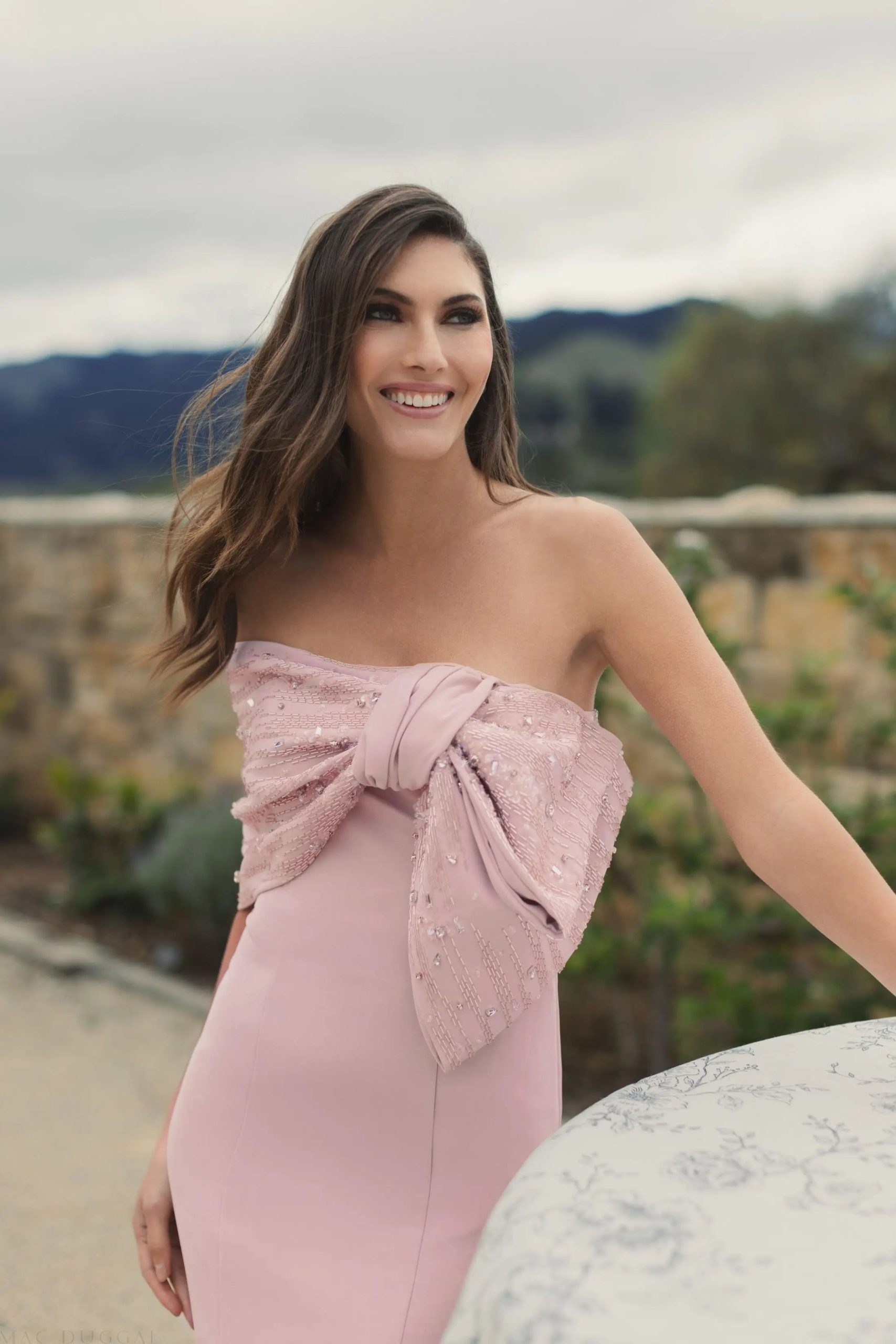 Mac Duggal Women’s Dresses Pink Beaded Off-the-shoulder Satin Trumpet Gown | Blush