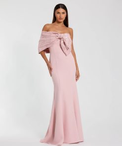 Be the first to review “Mac Duggal Women’s Dresses Pink Beaded Off-the-shoulder Satin Trumpet Gown | Blush” Cancel reply