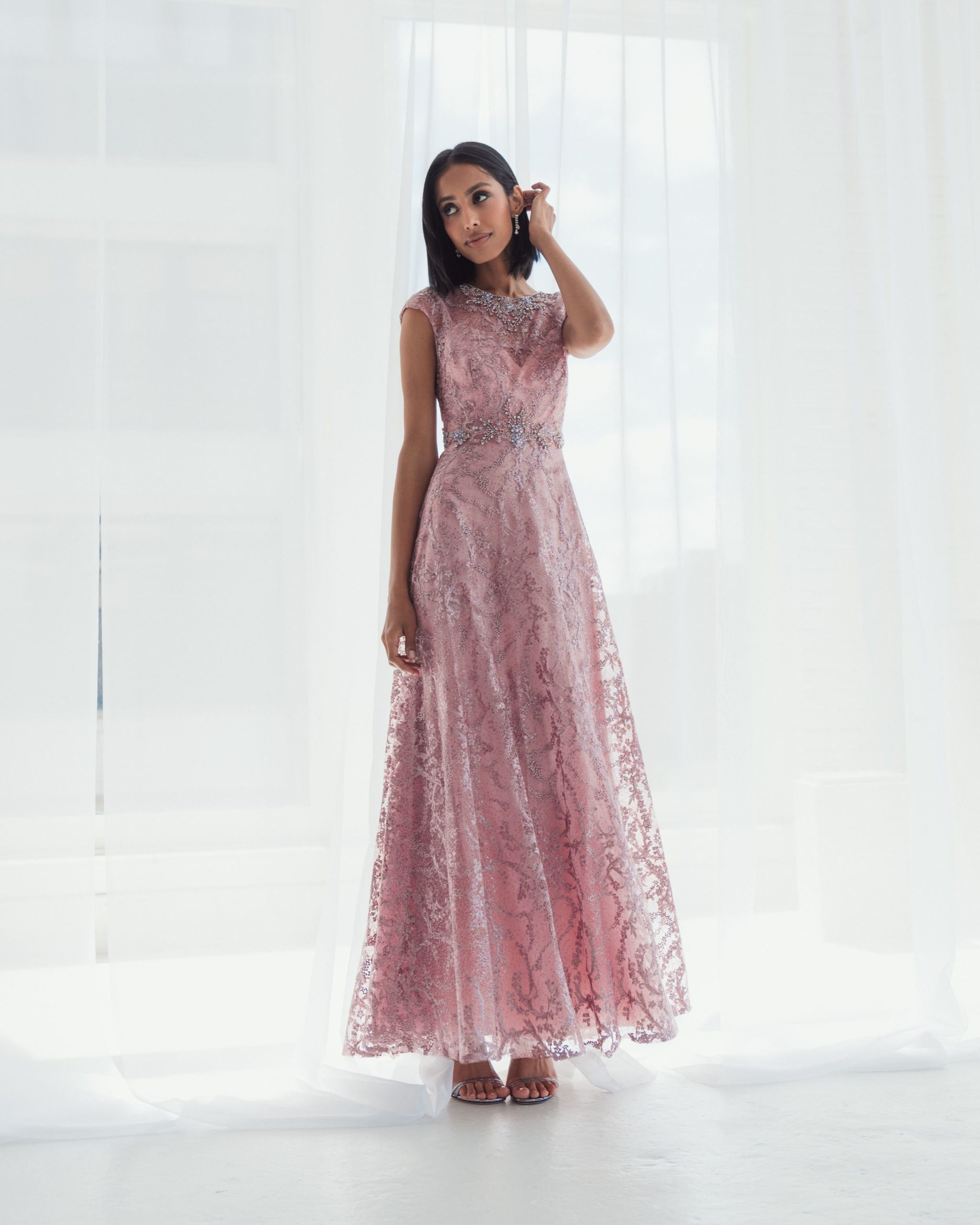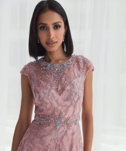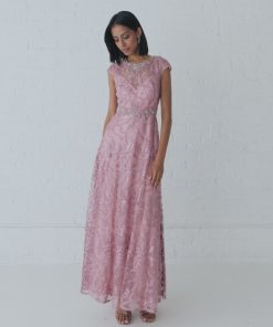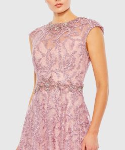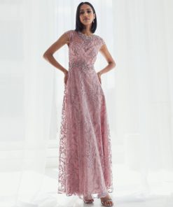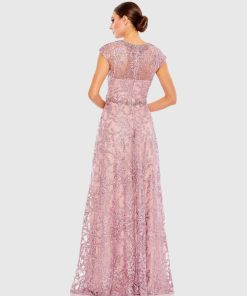 Mac Duggal Women’s Dresses Pink Embroidered Cap Sleeve A Line Gown | Rose