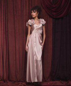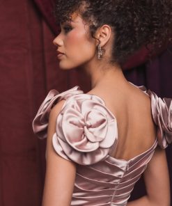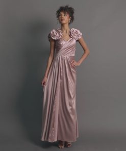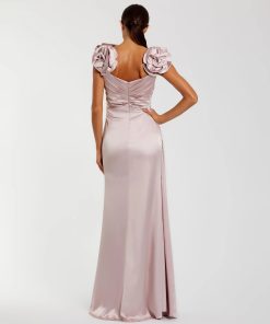 Mac Duggal Women’s Dresses Pink Faux Wrap Satin Gown With 3d Flower Straps | Pink