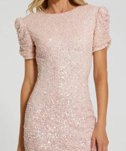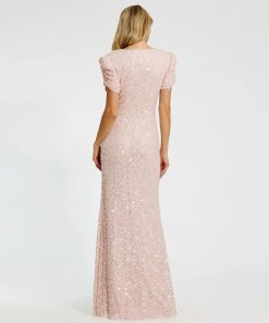 Step into elegance with our Gathered Short Sleeve Embellished Gown. This gown features exquisite beadwork and a flattering silhouette, perfect for special occasions. The short gathered sleeves add a touch of charm, making it an ideal choice for showcasing timeless sophistication.