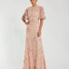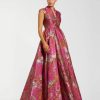 Make a statement in this regal raspberry jacquard ball gown, woven with metallic gold and silver threads for rich depth and drama. The structured bodice and full A-line skirt create a timeless silhouette perfect for galas, black-tie events, and mother of the bride moments.