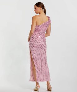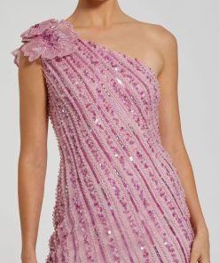 - Asymmetrical one shoulder neckline ft. 3D flower