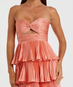 Mac Duggal Women’s Dresses Pink Pleated Charmeuse Strapless Tiered Ruffle Gown | Pink
