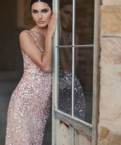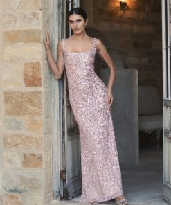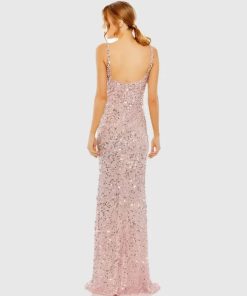 This stunning sequined dress features a dazzling sequin mesh overlay for added sparkle and glamour. The flattering scoop neckline and sleeveless design create an elegant look, while the low back with zipper closure adds a chic touch. A small sweeping train completes the graceful silhouette, making it perfect for any formal event or special occasion.
