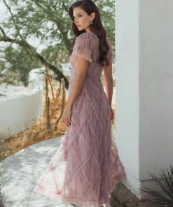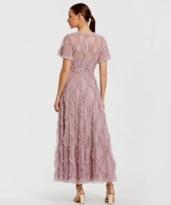 Be the first to review “Mac Duggal Women’s Dresses Pink Short Sleeve High Neck Ruffle Dress | Heather” Cancel reply