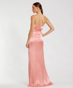 Mac Duggal Women’s Dresses Pink Strapless Satin Gown With 3d Flower | Coral