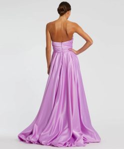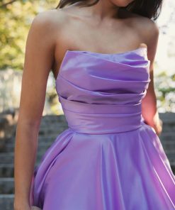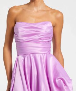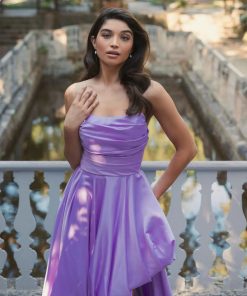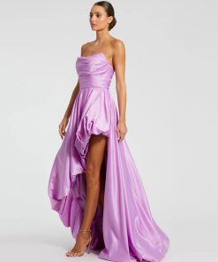 Introducing our Strapless Ruched High Low Gown, a captivating blend of modern style and classic elegance. Crafted from luxurious satin fabric with a fully lined bodice and skirt, this gown features a chic strapless neckline and sleeveless design. With its dramatic asymmetrical high-low hemline, it promises to make a statement at any event.