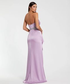Mac Duggal Women’s Dresses Purple Strapless Satin Gown With Embellished Belt Detail | Lilac